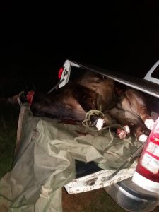 APREHENSION DE PERSONA EN FLAGRANTE COMISIÓN DE HECHOS PUNIBLES (Abigeato y Faenamiento Clandestino de Ganado Vacuno), INCAUTACION DE PARTE DESMEMBRADO DE ANIMAL VACUNO, UNA CAMIONETA DE DUDOSA PROCEDENCIA, TRES ARMAS DE FUEGO, UN ARMA BLANCA Y UN APARATO CELULAR.