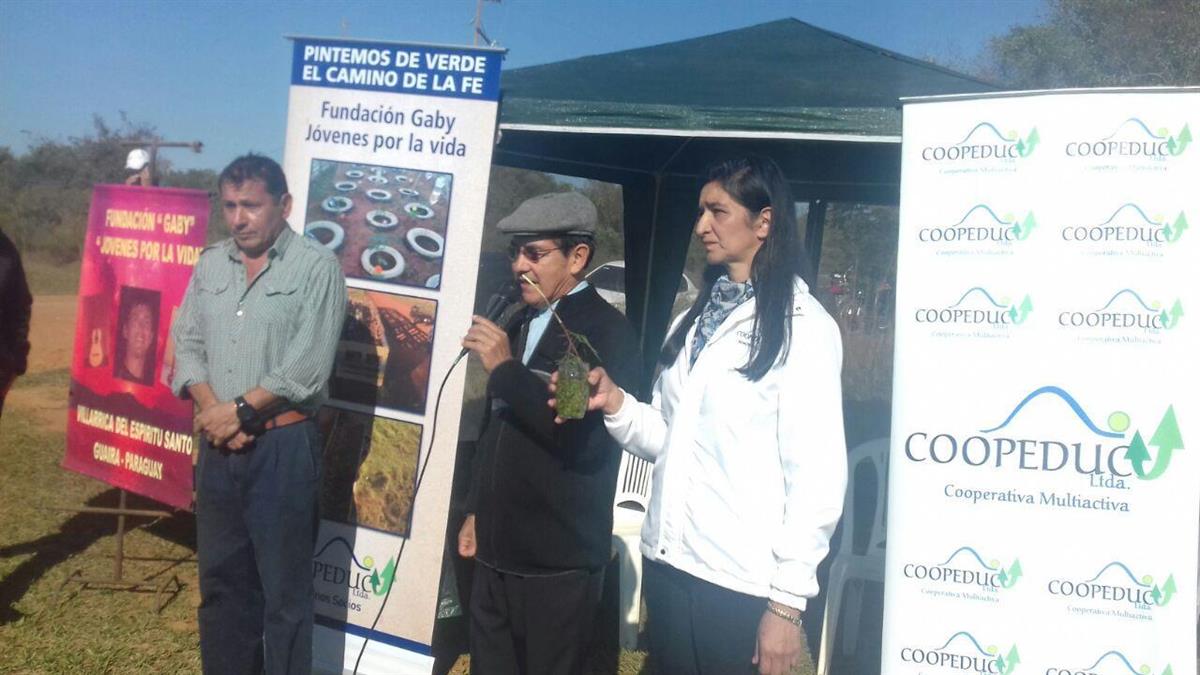 El padre Blás Arévalos, rector del «Santuario Diocesano Virgen del Paso» de Itape realizó la apertura del acto, que contó con la presencia de al señora Graciela Escobar miembro del consejo de la cooperativa, también Digno Cabrera presidente del comité de ecología dela cooperativa, Héctor Villalba representante de la fundación «Gaby», y pobladores de Itape.