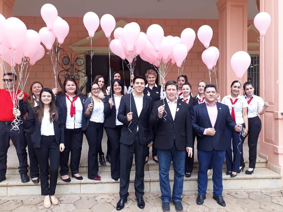 El intendente de Villarrica, Dr. Gustavo Navarro Arza junto con otros funcionarios, lanzaron esta mañana globos de color rosa asociándose a  la campaña en la lucha contra el cáncer de mama.