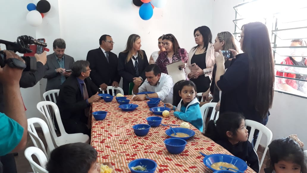 El ministro Petta junto con el Gobernador estuvieron probando la calidad de la comida servida a los niños.