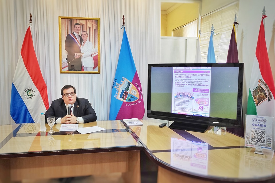 El Gobernador de Guairá César Luis Sosa presentó hoy su informe de gestión, asegurando que aún queda mucho por hacer, agradeció a Dios, su Familia, y al Gobierno Nacional, a todas las autoridades de los distintos distritos y a todos los ciudadanos guaireños por el apoyo y acompañamiento.