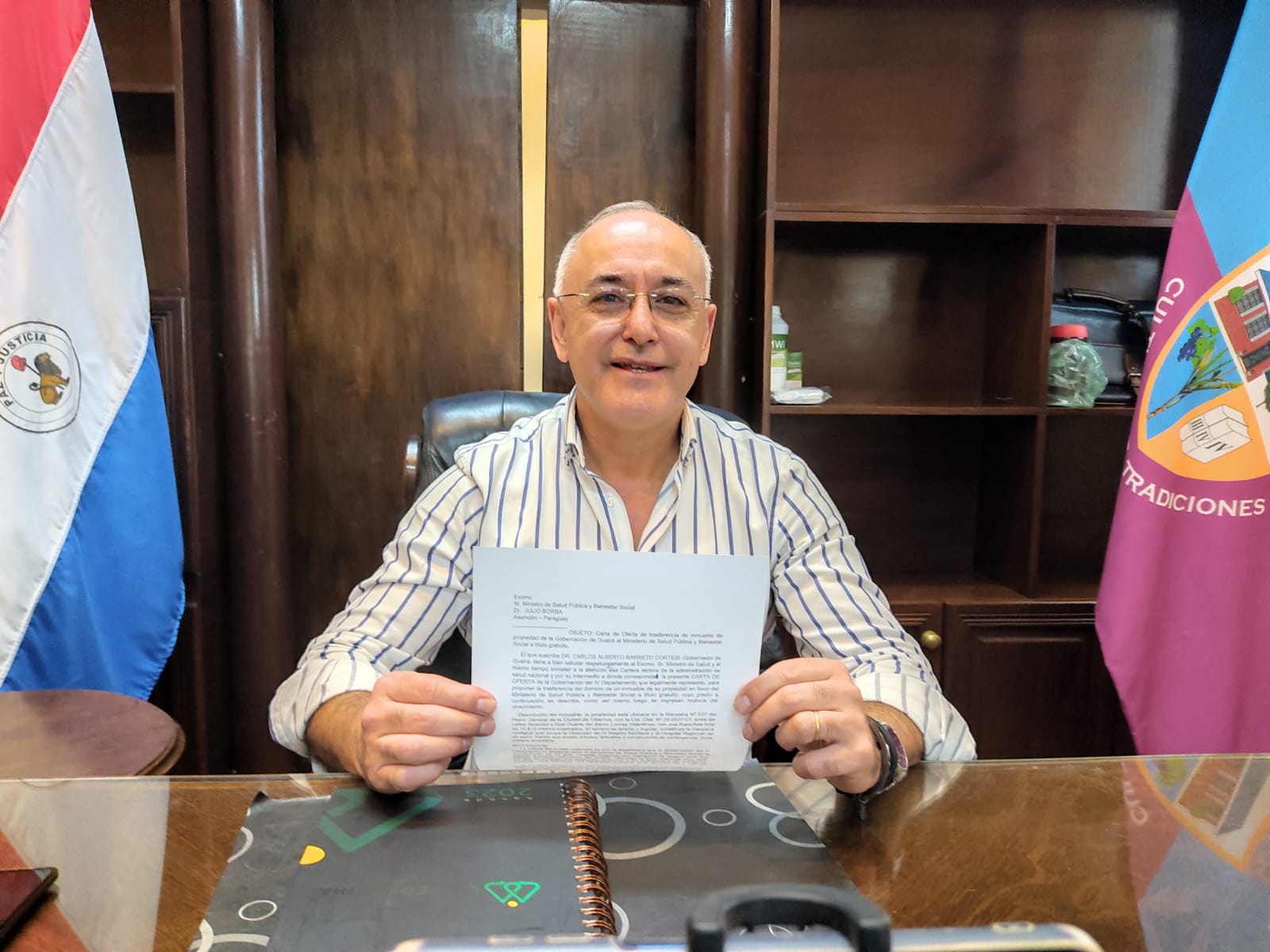 El Gobernador de Guairá, Dr. Carlos Barreto, hablo sobre la transferencia del predio del Hospital Respiratorio a manos del Ministerio de Salud, mencionó que actualmente están realizando la carta de oferta que presentarán ante la cartera sanitaria. Se aguarda que el Ministerio de Salud, Julio Borba, pueda contestar ese documento en la brevedad posible, según mencionó el jefe departamental.