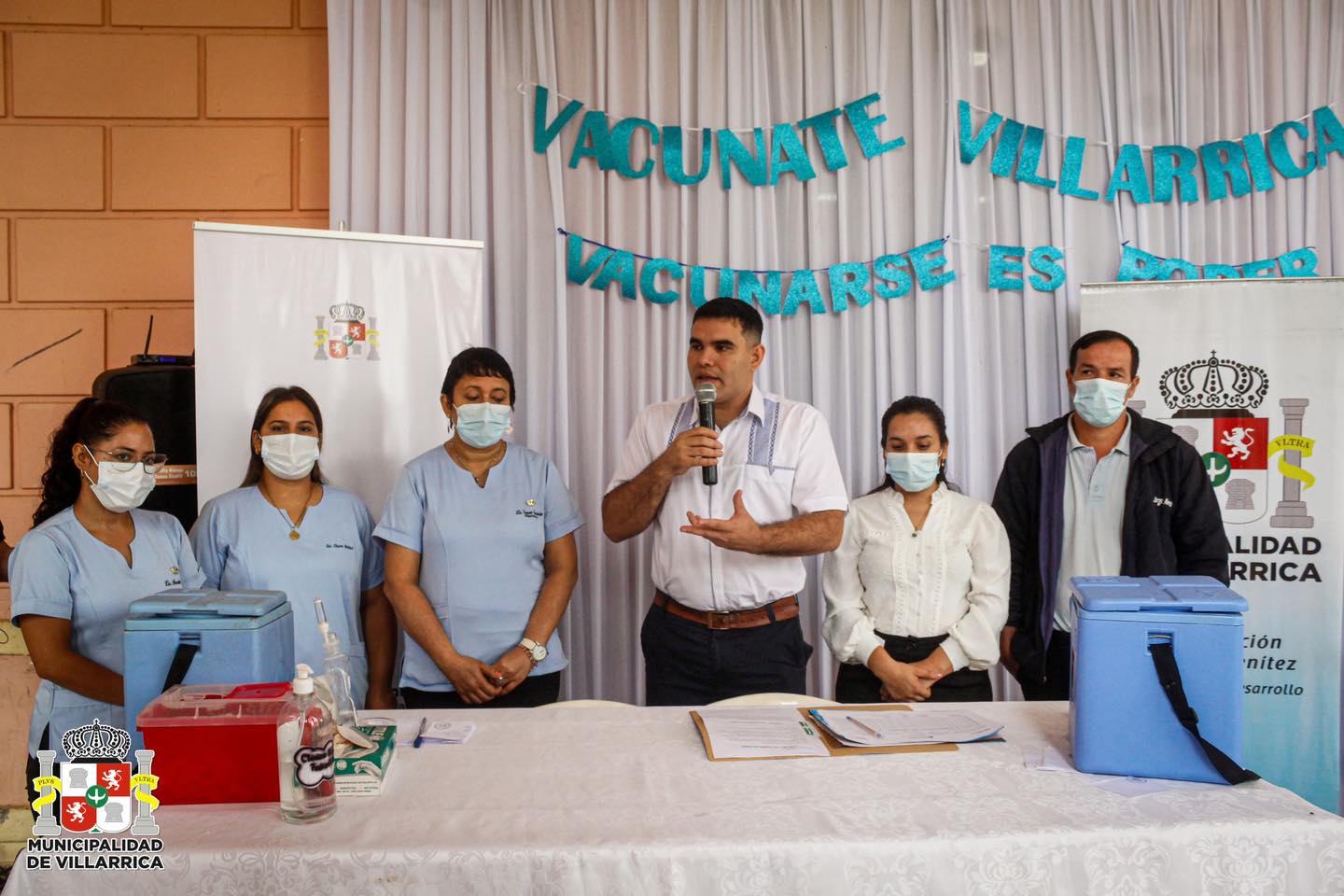 dio inicio a la campaña «Vacunate Villarrica», en la mañana de este lunes 8 de abril, acompañado de los funcionarios de la Clínica Municipal.
