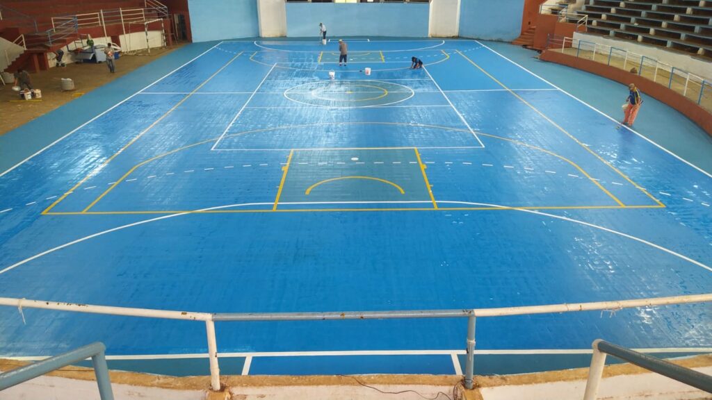El Fiscalizador de Obras del municipio local, Arquitecto Quirino Pisciotta manifestó que realizaron la pintura de la pista del estadio Ykua Pytã, agregó que es intensivo el uso del estadio pero actualmente estan con una pausa del uso para realizar las mejoras.