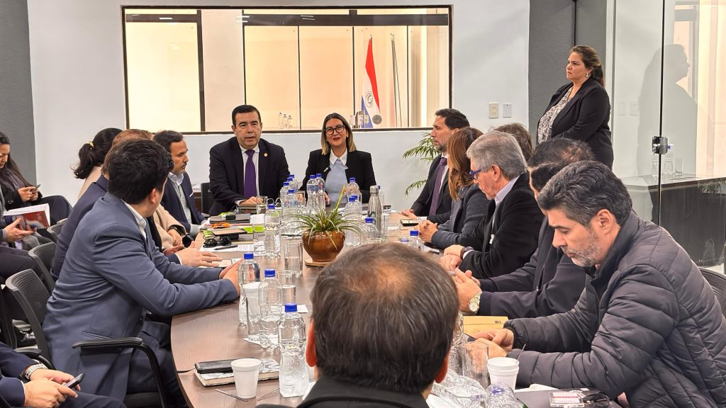 Participaron de la reunión de este viernes la ministra de Trabajo, Mónica Recalde, el viceministro de Transporte del MOPC, Emiliano Fernández y representantes de los principales gremios de empresas del transporte público del Área Metropolitana.
