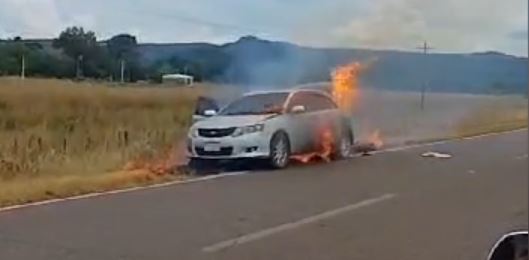 Un automóvil ardió en llamas a unos pocos kilómetros del centro de La Colmena, en la tarde del domingo cerca de las 14:20 hs.