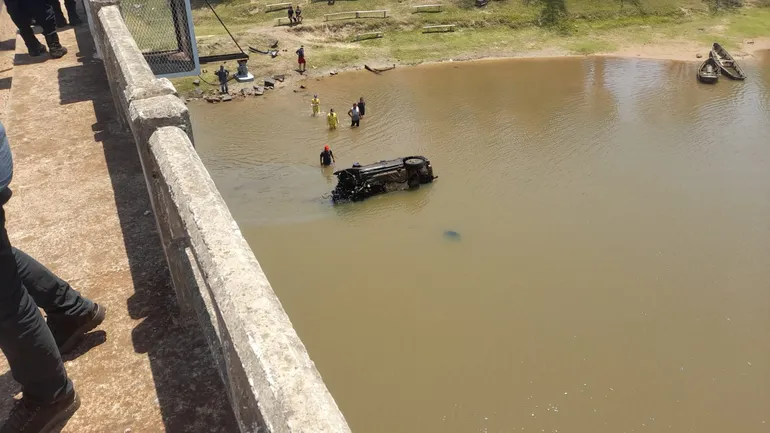 Se confirmó el fallecimiento de los tres ocupantes del rodado, que cayó desde el puente al río. Se presume que fue producto de la alta velocidad que circulaba.
